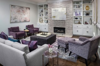 Andrew howard interior design gray and purple living room designed off a master bed room featuring a gray sofa, a white desk, and a purple chevron chair. Browse 90 purple and grey living room photos. See more ideas about house interior, home decor, home. I am very into gray, but only if the trim is right. Colors used with purple in this room:
