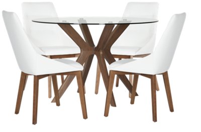 Table, 4 chairs and benchthe bronx dining set is modern, durable and functional.